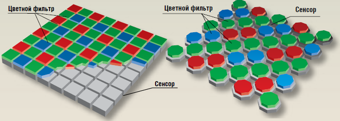 Вне зависимости от строения матрицы на практике важно лишь то, насколько велика площадь, на которой расположены пиксели. Именно эта площадь является решающим фактором при определении размера каждого из пикселей и расстояния между ними. Чем меньше размер пикселя, тем меньше он получает света. И чем ближе друг к другу расположены пиксели, тем больше порождается шумов.